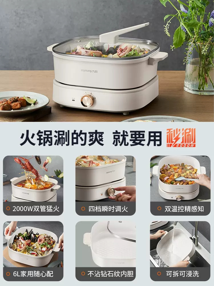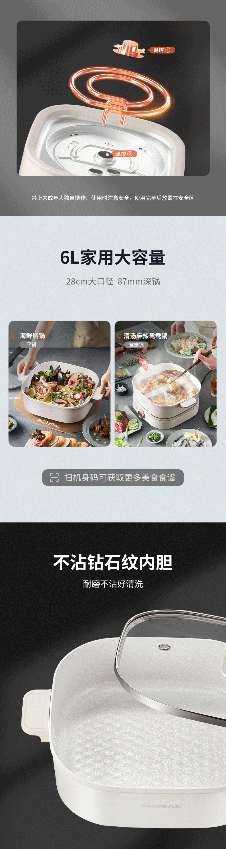 【九陽】電火鍋鍋家用多功能鴛鴦分體式大容量電炒菜鍋電煎鍋電煮鍋6L